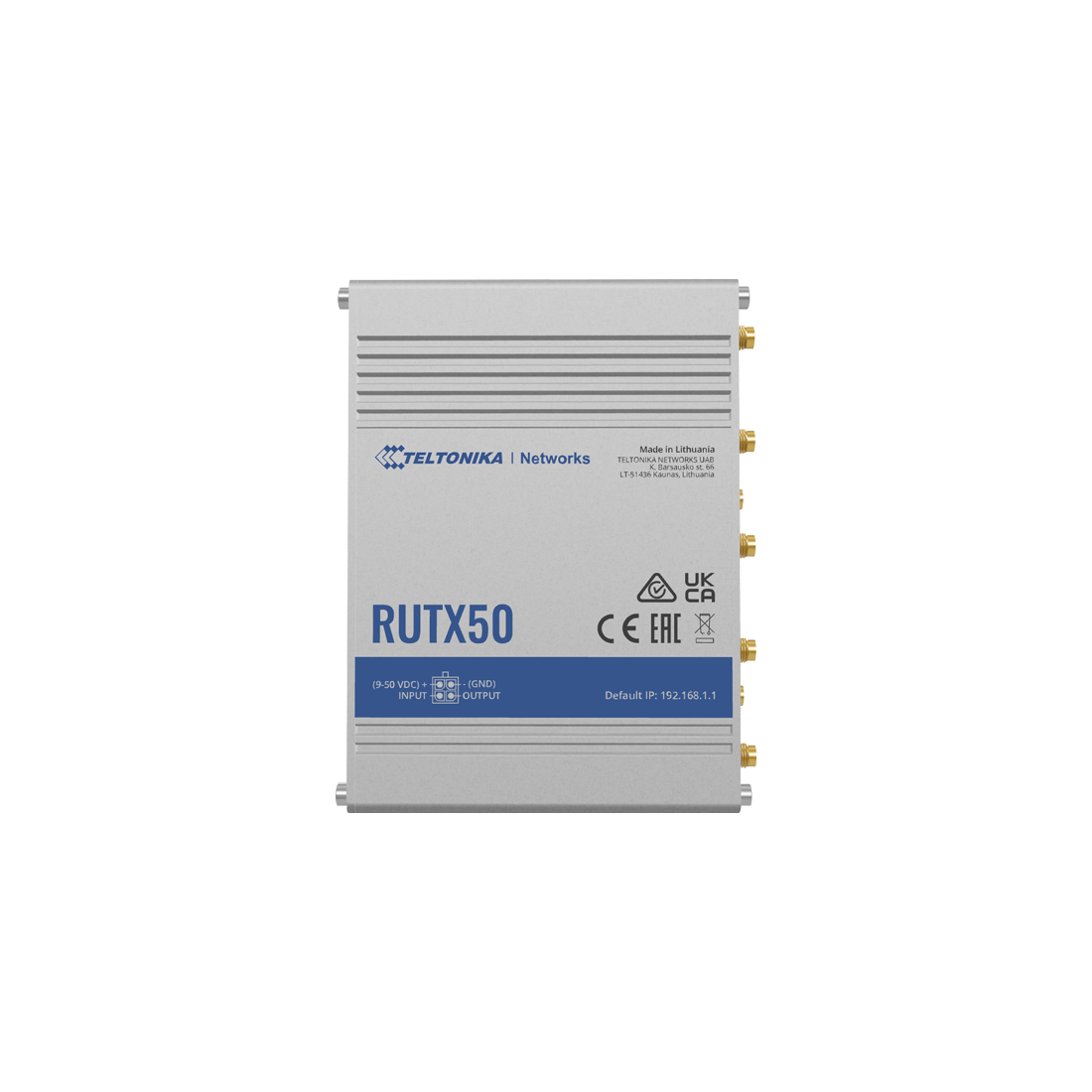 - RUTX50 es su enrutador industrial multired preparado para el futuro, que ofrece comunicación móvil 5G para aplicaciones de alta velocidad y uso intensivo de datos.