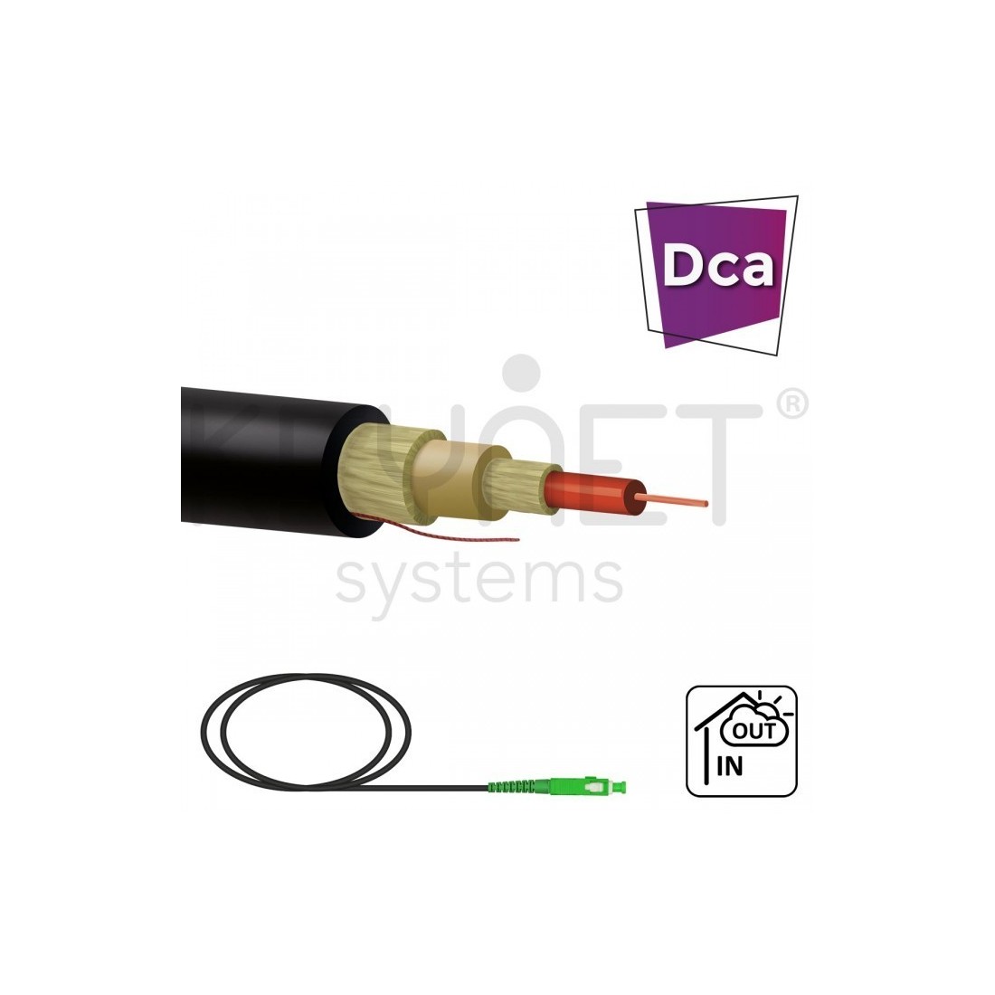 Pigtail SC/APC, G657A2, armada flexible Dca, para interior y exterior (PE), 60mts. Negro