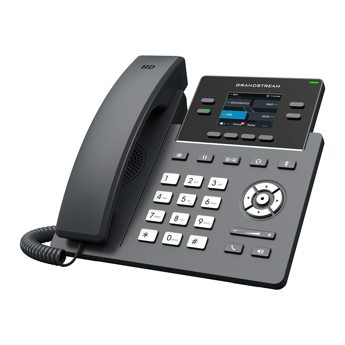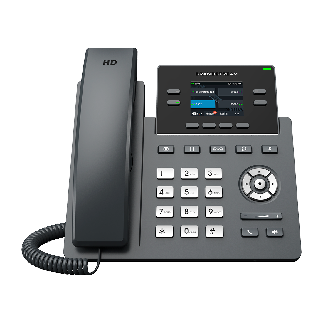 El Grandstream GRP2612G es un teléfono IP profesional de 4 líneas con doble puerto Gigabit y alimentación PoE 802.3af. Diseñado para entornos empresariales, combina calidad de audio HD, seguridad de nivel operador y fácil administración mediante GDMS (Grandstream Device Management System) para aprovisionamiento y supervisión en la nube.