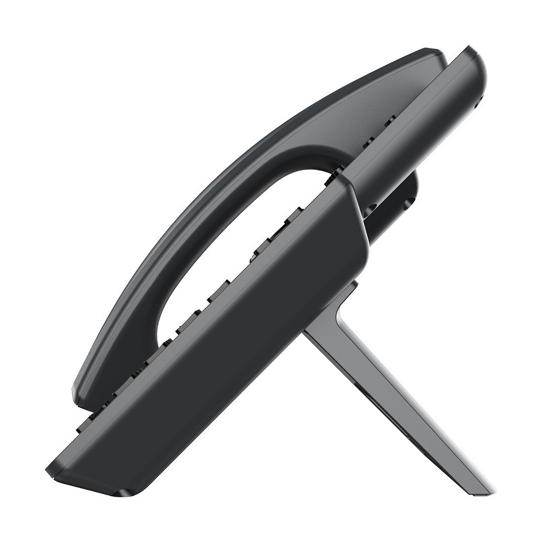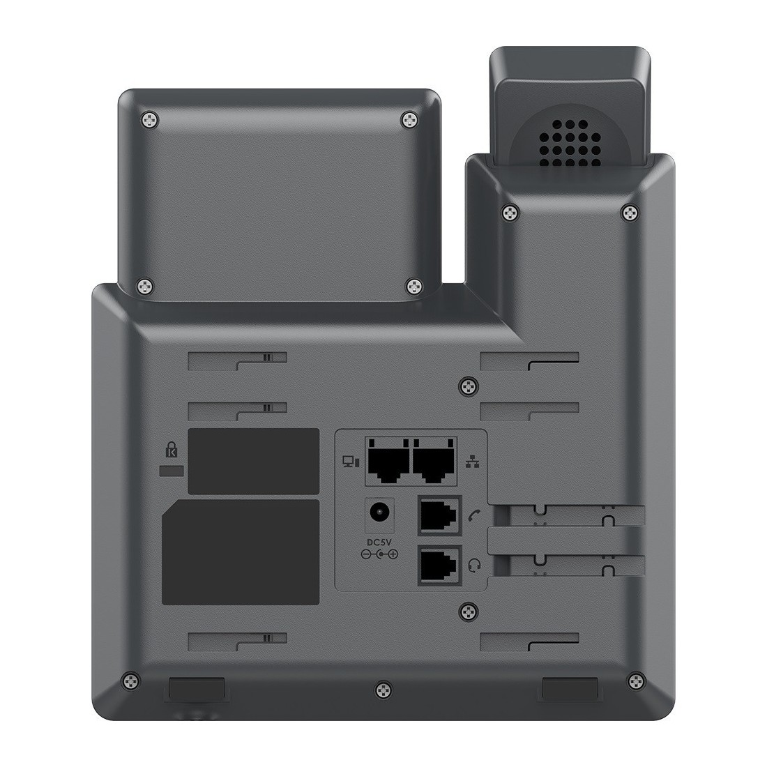 | Teclas de Función | 2 teclas de línea con LED bicolor y soporte para 4 cuentas SIP, 4 teclas inteligentes sensibles al contexto, programables con XML, 5 teclas (de navegación, de menú), 8 teclas de función dedicadas para: MESSAGE (con indicador LED), TRANSFER, HEADSET, MUTE, SEND/REDIAL, SPEAKERPHONE, VOL+, VOL- |
