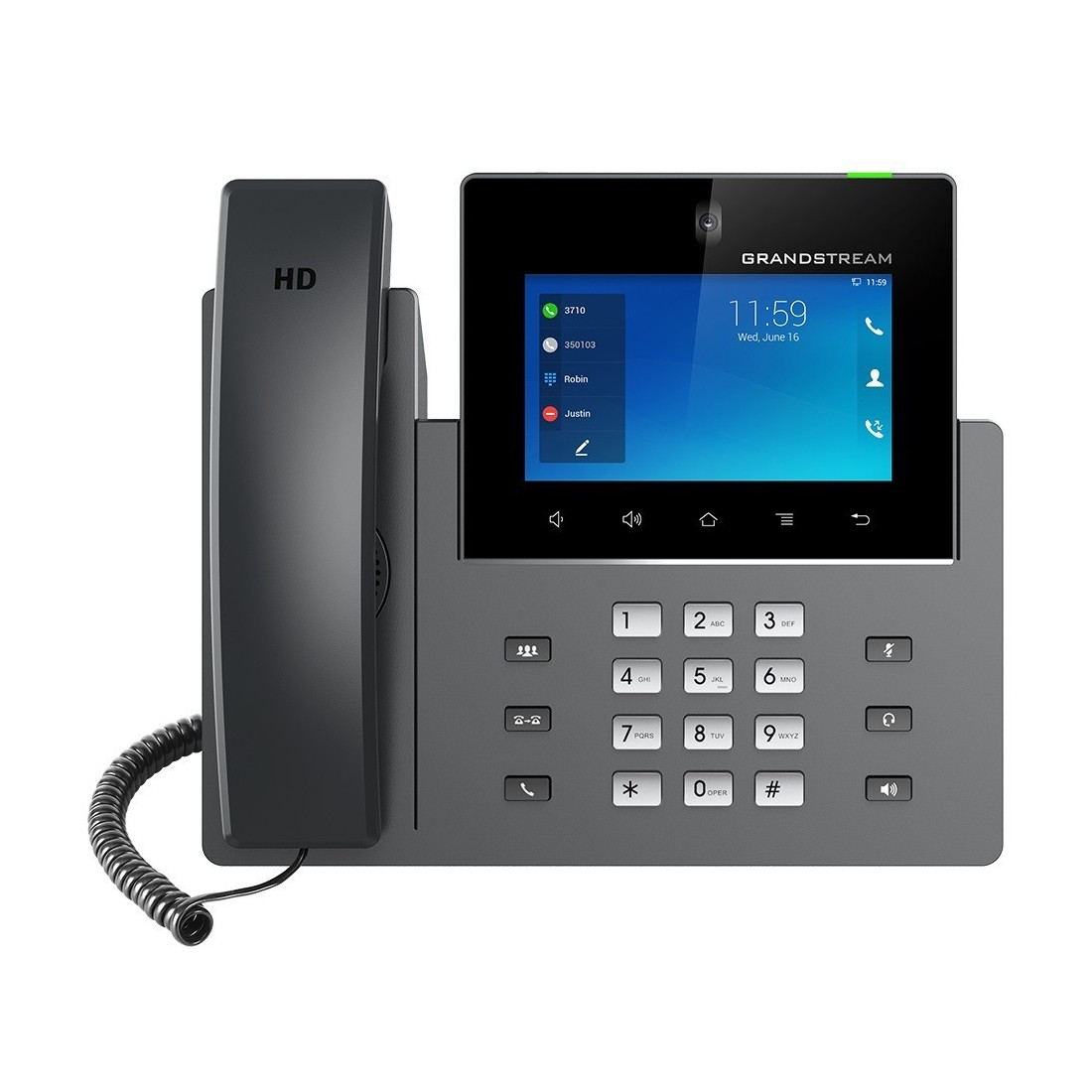 | Contenido del Paquete | Teléfono GXV3350, auricular con cordón, base, fuente de alimentación universal, cable de red, guía de instalación rápida, declaración de GPL |