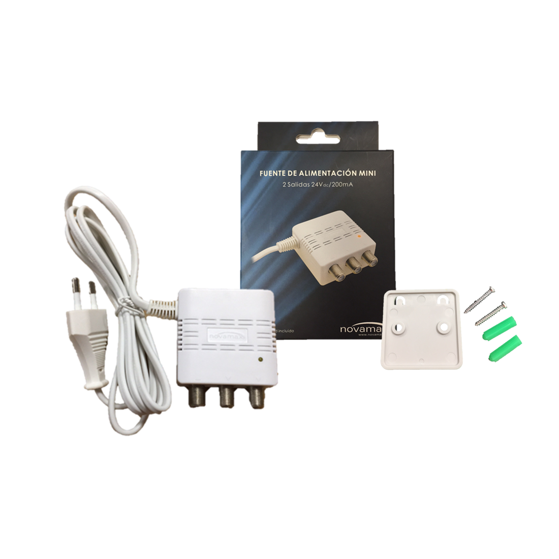 Una característica clave de la Fuente Alimentación 24V 200mA es su diseño mini con dos salidas. Las salidas permiten distribuir la señal de TV amplificada a dos puntos de la vivienda (por ejemplo, a un televisor y a una línea que va a un distribuidor interno). La fuente actúa como un inyector/distribuidor, separando la señal de corriente DC (que va hacia el mástil) de la señal de TV, que se dirige a los televisores. Su formato compacto hace que sea fácil de instalar en cualquier caja de registro o cerca de la toma principal, siendo una solución práctica y fiable de Novamax para optimizar la recepción de TDT.