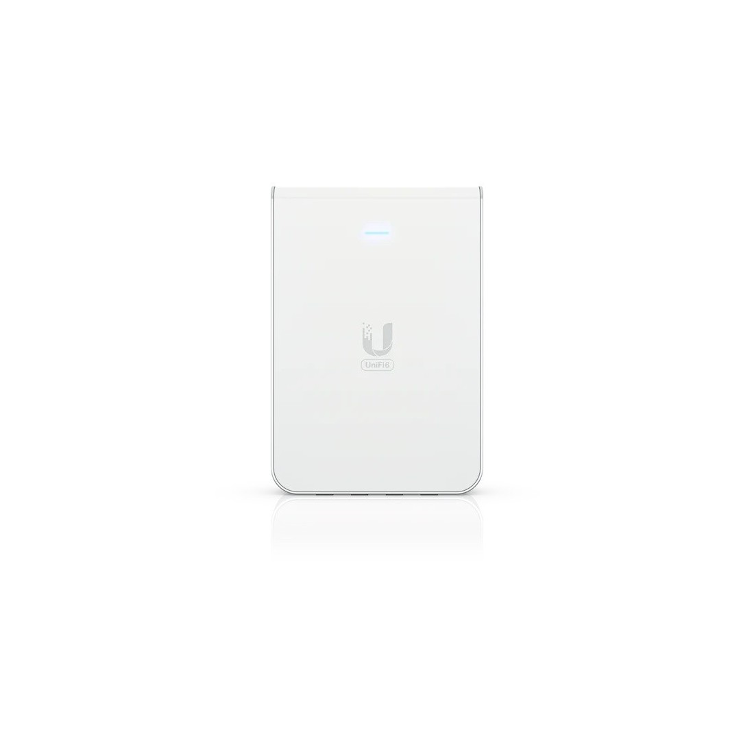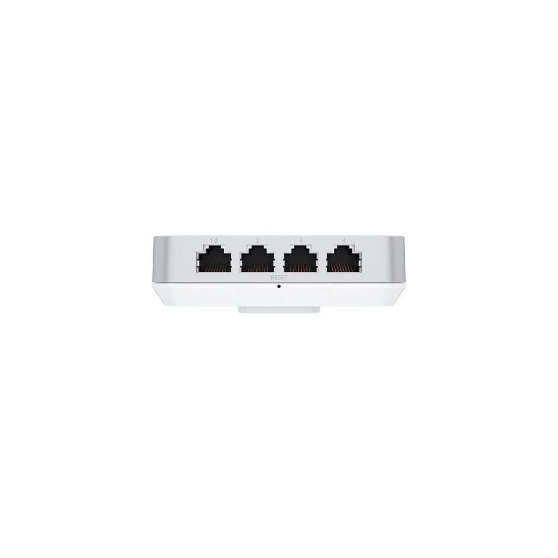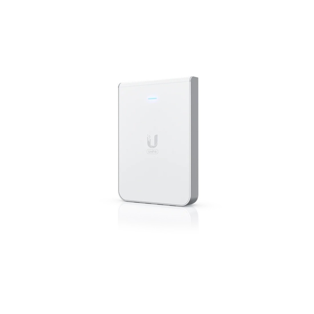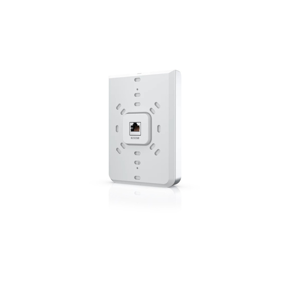 Punto de acceso WiFi 6 montado en la pared con un interruptor PoE incorporado.